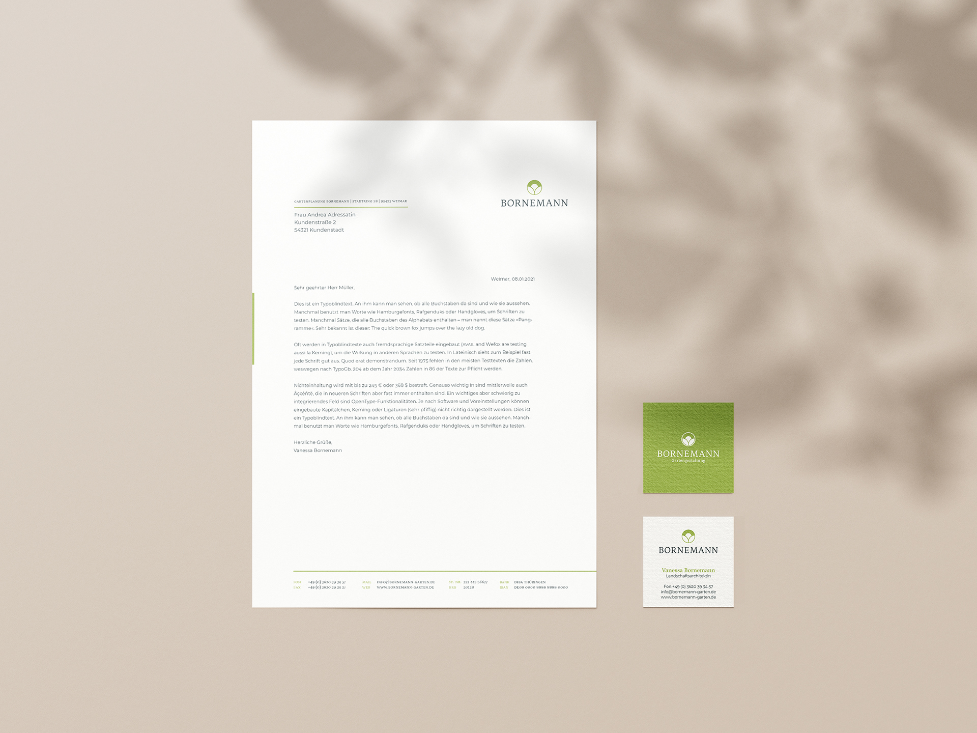 Gestaltung des Corporate Designs für die Landschaftsarchitektinund Gartenplanerin Vanessa Bornemann